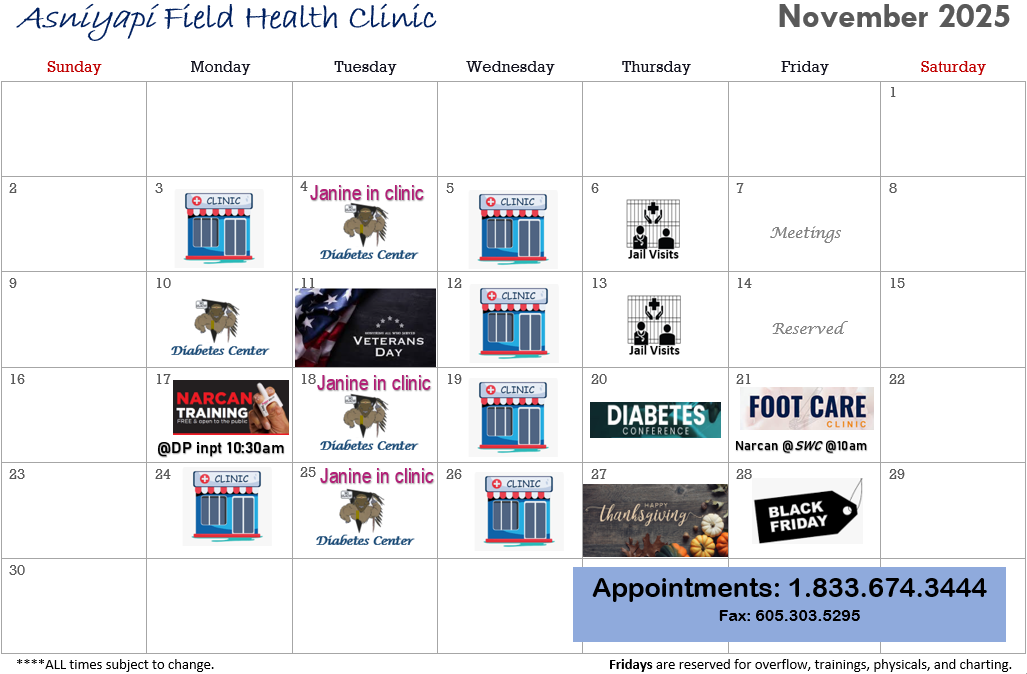 Domestic Violence Program Calendar Youth Center Calendar Tribal Vocational Rehabilitation Program Calendar Asniyapi Calendar Diabetes Center Calendar