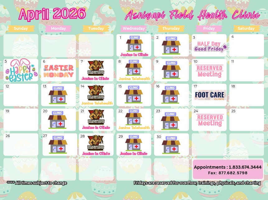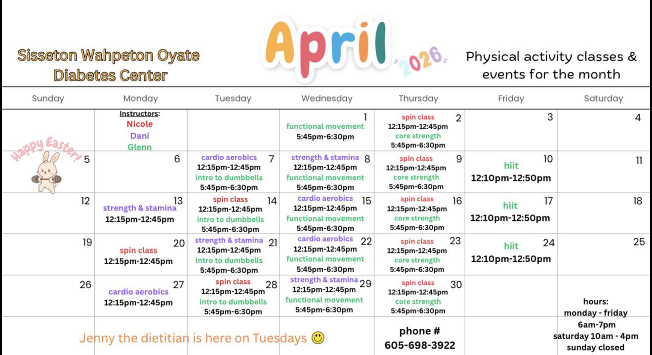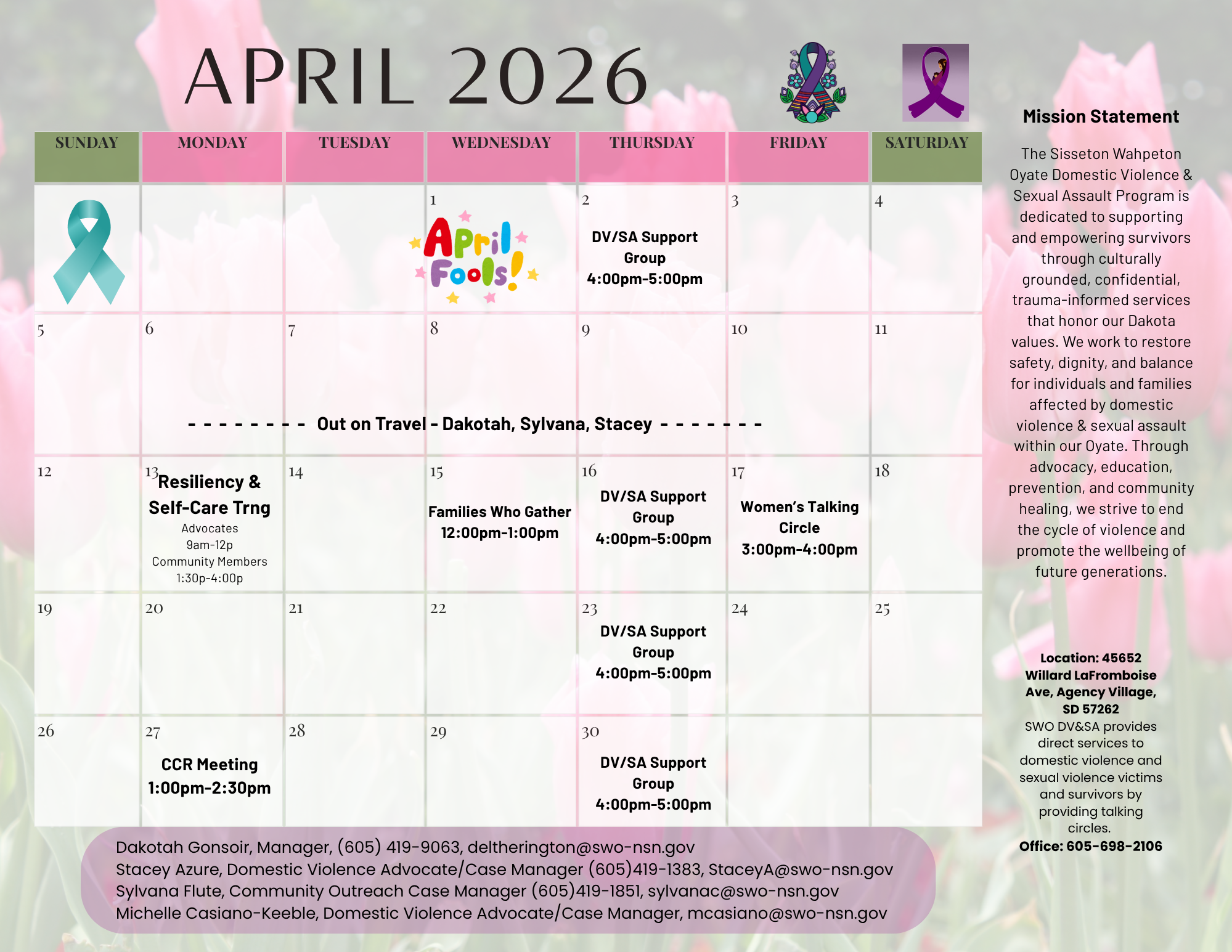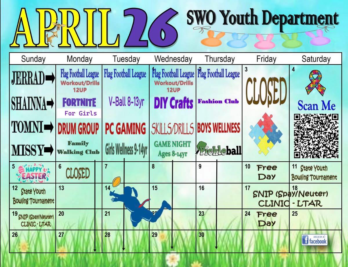 Domestic Violence Program Calendar Youth Center Calendar Tribal Vocational Rehabilitation Program Calendar Asniyapi April 2026 Fitness Center April 2026
